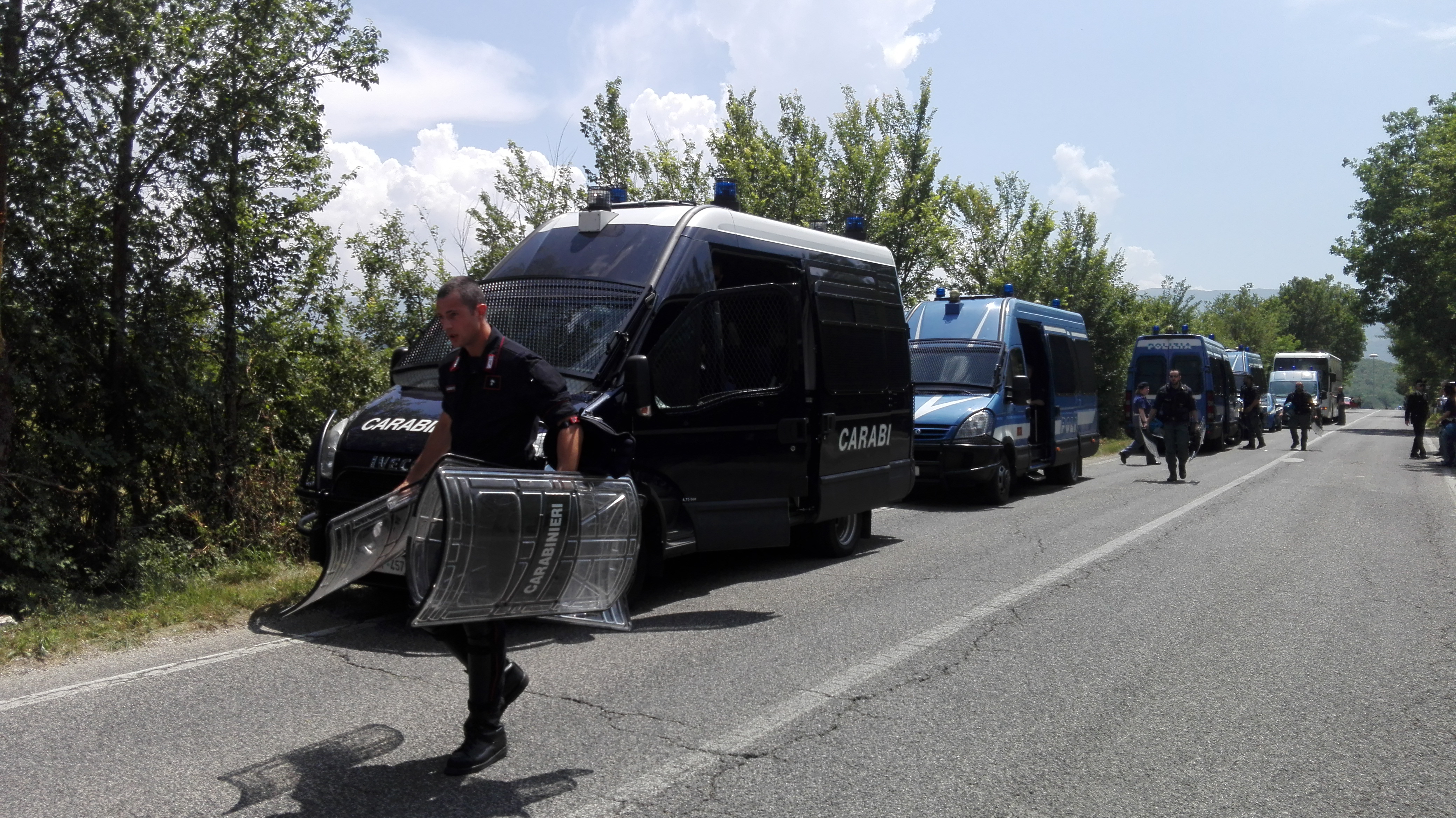 Nessun incidente si è verificato nel corso della protesta anche se la tensione è stata alta soprattutto davanti al carcere, dove la 50ina di manifestanti rimasti nonostante il caldo, erano guardati a vista da 70 agenti delle forze dell’ordine (rinforzi arrivati anche dalla Capitale) in tenuta antisommossa (un altro centinaio schierati lungo la provinciale all’esterno del campo dove i manifestati erano raccolti).
