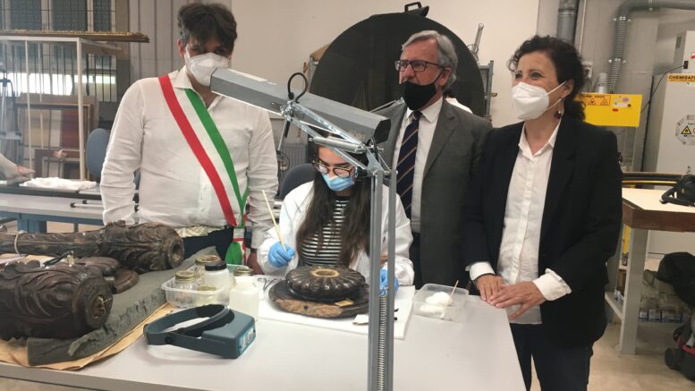 Nell’ambito dell’incontro presso i laboratori del corso di restauro una conferenza stampa per illustrare i restauri in corso di nove opere d’arte provenienti dal territorio di Amatrice. Si tratta di manufatti datati tra il XVI e il XVIII secolo, salvati dalle chiese del territorio e dal Museo di Amatrice, distrutti dal sisma del 24 agosto del 2016 e sui quali il corso di restauro dell’accademia ha inteso organizzare un vero e proprio cantiere scuola in convenzione con il Comune di Amatrice. Alla conferenza stampa oltre al Presidente e alla Direttrice ABAQ, Rinaldo Tordera e Maria D’Alesio, la responsabile del restauro Gabriella Forcucci, il consigliere comunale delegato alla cultura del Comune di Amatrice Alessio Serafini insieme all’architetta Brunella Fratoddi dell’Ufficio Patrimonio.