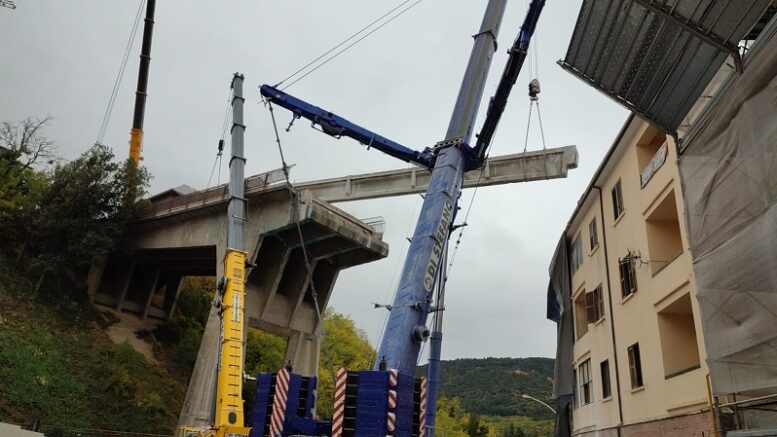 All’Aquila smontata anche l’ultima trave del Ponte Belvedere. Alle 15 di questo pomeriggio il manufatto, del peso di 34 tonnellate e della lunghezza di 50 metri è stato sollevato e portato su via Persichetti per essere poi sezionato e trasportato via per lo smaltimento.