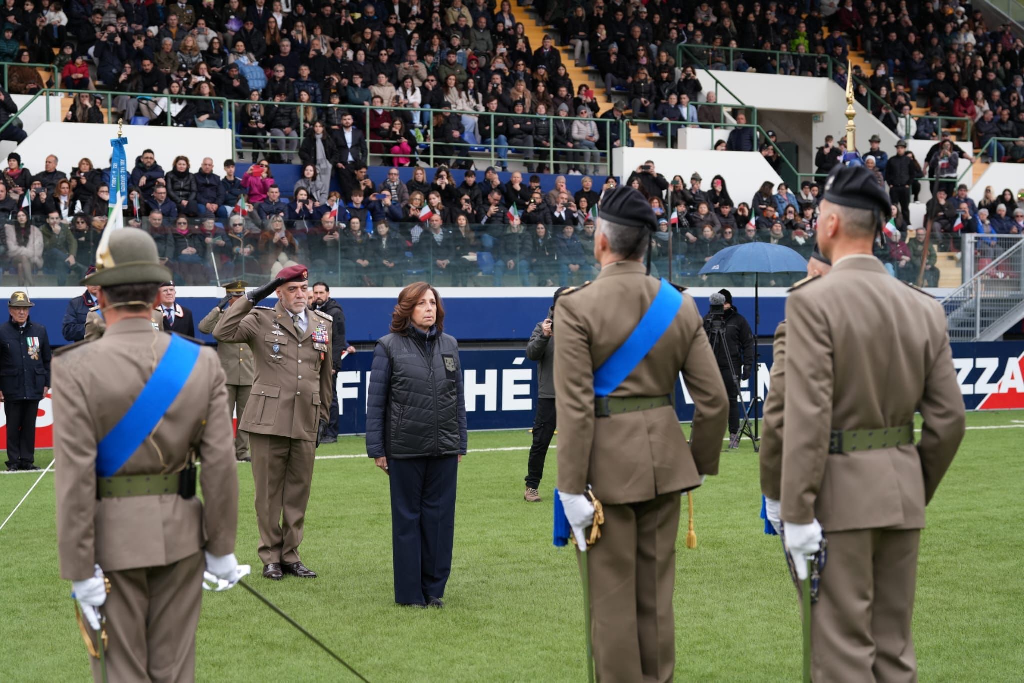 Allo stadio Gran Sasso d’Italia si è tenuto il giuramento di fedeltà alla Repubblica italiana dei Volontari in ferma iniziale del 3° Blocco 2024, effettivi al 235° Reggimento Addestramento Volontari Piceno. Presenti alla cerimonia il sottosegretario di Stato alla Difesa, la senatrice Isabella Rauti e il Capo di Stato Maggiore dell’Esercito, Generale di Corpo d’Armata Carmine Masiello. I giovani militari sono i primi addestrati in Abruzzo con la caserma del 9° reggimento Alpini. Sul prato dello stadio anche i Gonfaloni del Comune e della Provincia de L’Aquila, della Regione Abruzzo e del Comune di Ascoli Piceno, decorato di Medaglia d’Oro al Valor Militare, oltre alle autorità civili, militari e religiose, al senatore Guido Liris e ai sindaci dell’Aquila, Pierluigi Biondi, e di Ascoli Piceno, Marco Fioravanti.