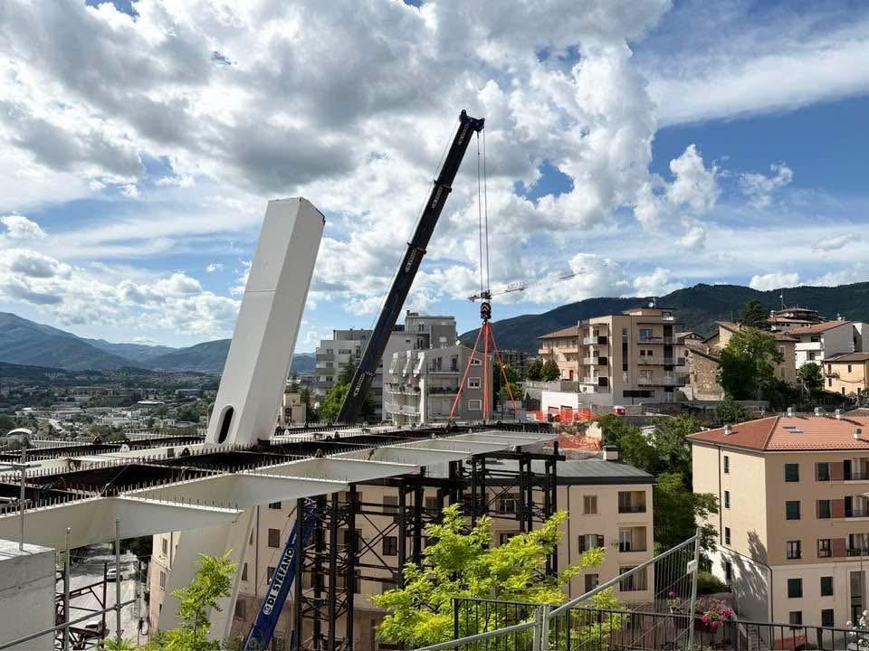 Per garantire le lavorazioni in totale sicurezza, dal 20 marzo via Fontesecco è stata totalmente interdetta al traffico nel tratto compreso tra via XX settembre e via degli Ortolani. Il nuovo viadotto per entrare e uscire dal centro storico aquilano avrà un’antenna in acciaio che andrà a ridisegnare anche lo skyline della città.