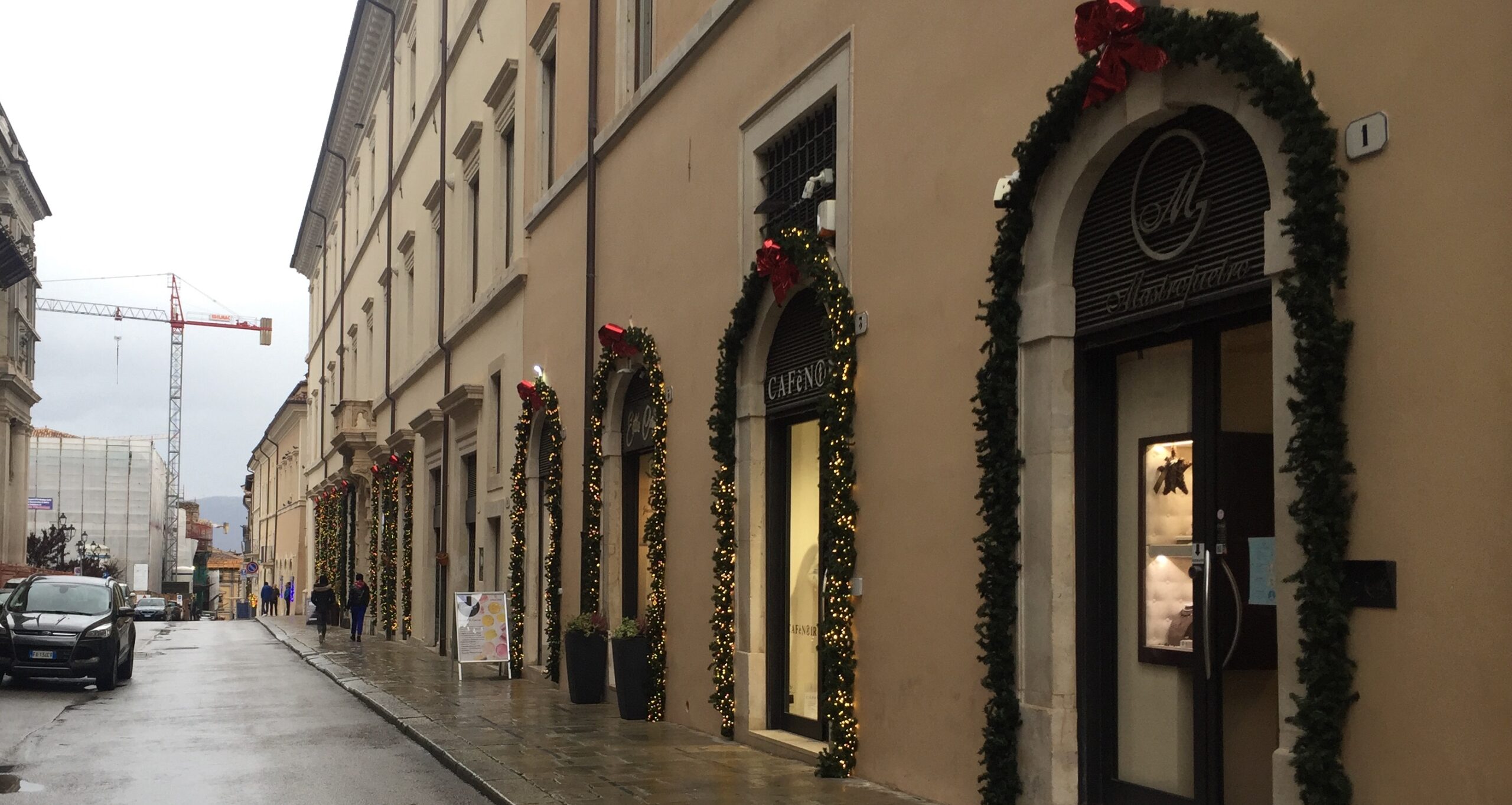 Le luci e gli addobbi di Natale in centro storico brillano comunque a ricordare a tutti le imminenti festività che stanno per arrivare.