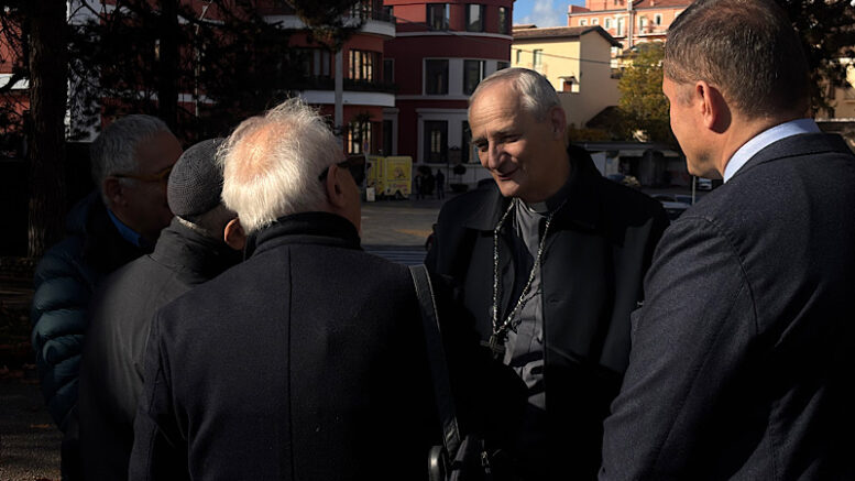 Lo incontriamo dopo un buon caffè in centro storico, a pochi passi dal monastero agostiniano delle suore, occasione per chiedere se gli aquilani possono aspettarsi una visita di Papa Leone nell’immediato futuro. Del resto il Papa visitò le suore subito dopo il terremoto quando era priore. Zuppi lo auspica per gli aquilani, sarebbe una bella cosa, afferma. Zuppi é legato all’Aquila da un filo importante, fu lui ad aprire la Porta Santa ai tempi del Covid, come ha avuto modo di ricordare il sindaco Pierluigi Biondi.