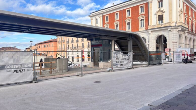 A L’Aquila continua a fare discutere la pensilina di sbarco del tapis roulant che dal terminal di Collemaggio porta in piazza Duomo