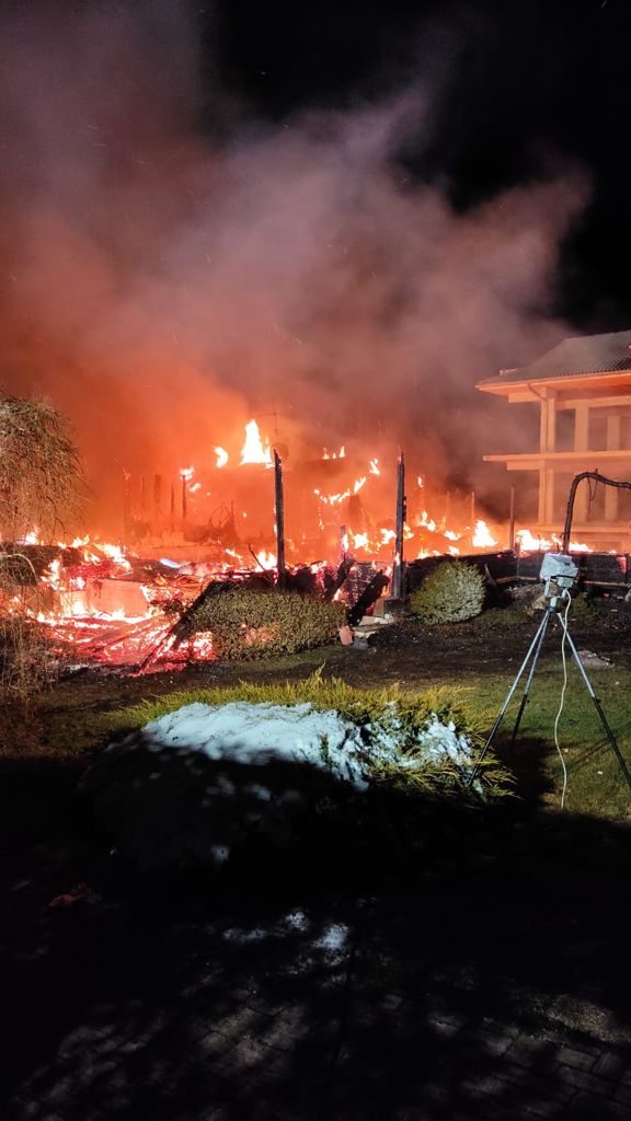 Fiamme altissime quelle che si sono sviluppate che in poco tempo hanno completamente distrutto la casa in legno, fortunatamente non ci sono stati feriti.