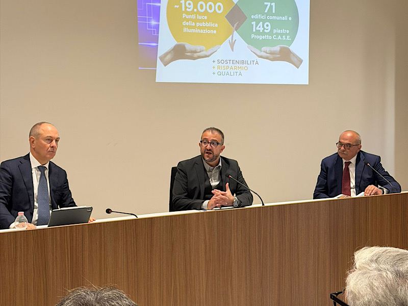 Un accordo molto importante quello presentato dal Comune dell’Aquila a Palazzo Margherita. Si tratta di un partenariato pubblico privato relativo all’efficientamento energetico e alla riqualificazione normativa della rete di illuminazione pubblica comunale, degli edifici di proprietà comunale e degli immobili facenti parte del progetto C.a.s.e. dell’Aquila.
