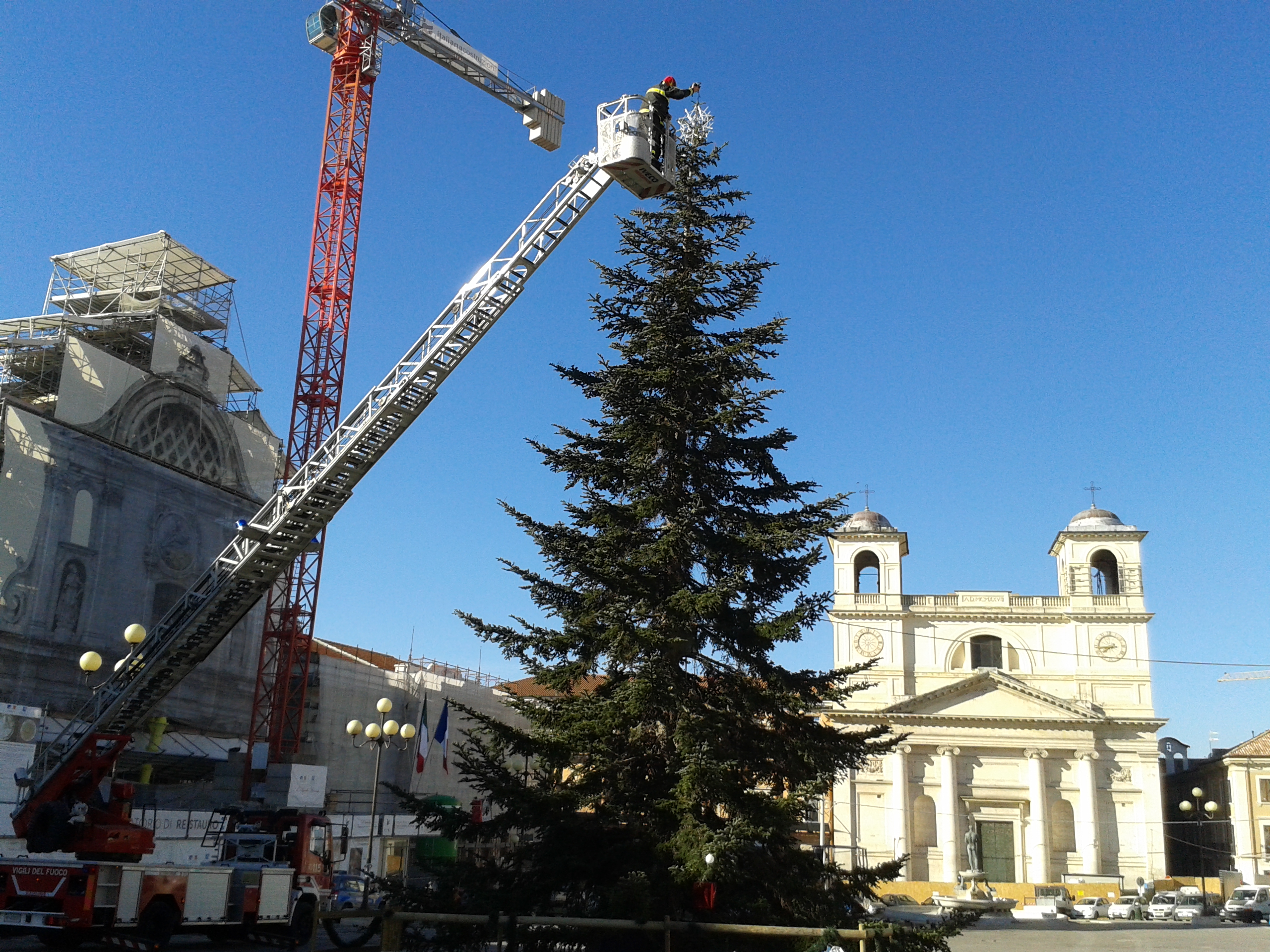 E così i due Rotary aquilani (Gran Sasso e L’Aquila), l’azienda “Creation Vetrina”, i vigili del fuoco (intervenuti con una gru di 20 metri) e la squadra specializzata del Comune da questa mattina sono al lavoro per addobbare l’albero che sarà, dicono gli aquilani improvvisati decoratori, il più bello di sempre.