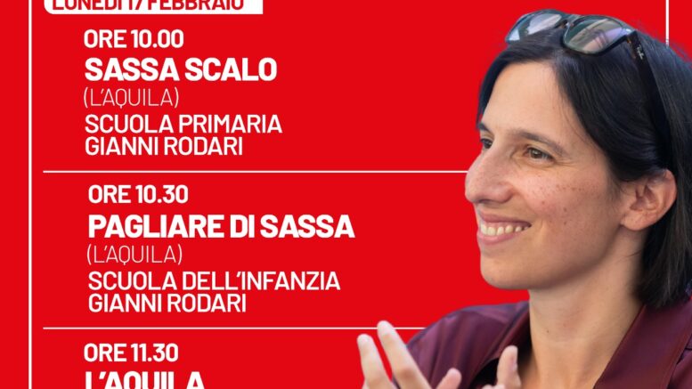 Lunedì prossimo la segretaria del Pd Elly Schlein farà visita ad alcune scuole a L’Aquila insieme a una delegazione di parlamentari dem.