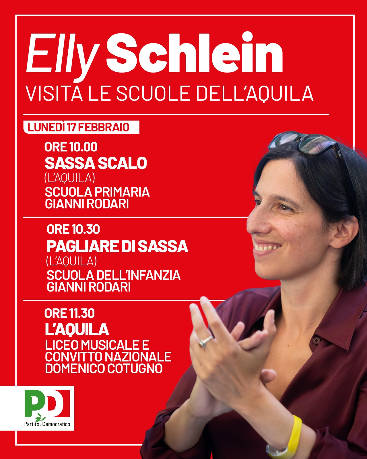 Lunedì prossimo la segretaria del Pd Elly Schlein farà visita ad alcune scuole a L’Aquila insieme a una delegazione di parlamentari dem.