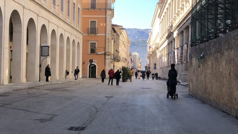 Molti aquilani, a spasso in centro o in pausa dal lavoro, hanno deciso di indossare lo stesso la mascherina, soprattutto se non si è soli.