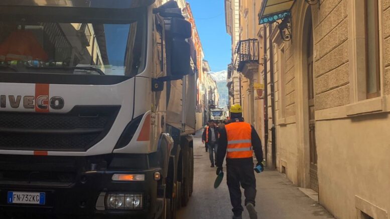 Prendono il via oggi a L’Aquila i lavori della nuova pavimentazione del corso nel centro storico lungo Corso Vittorio Emanuele fino alla Fontana Luminosa