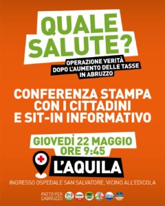 L’Aquila è la terza tappa del tour di sensibilizzazione sul tema “Quale salute? operazione verità sulla sanità dopo l’aumento delle tasse in Abruzzo”.