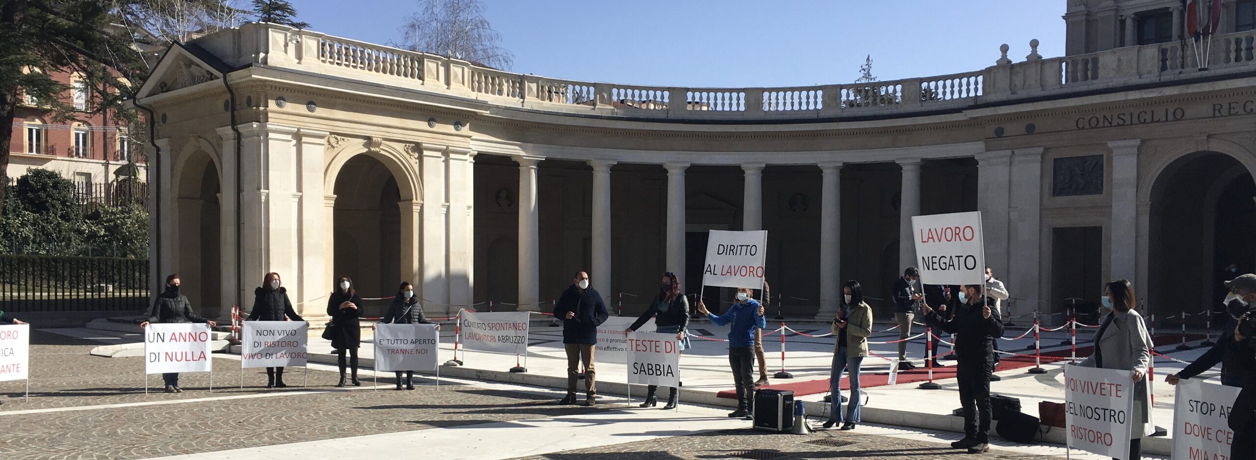 Un comitato spontaneo di lavoratori dei settori più penalizzati dalla pandemia ha dato vita all’Aquila ad una manifestazione all’Emiciclo molto partecipata