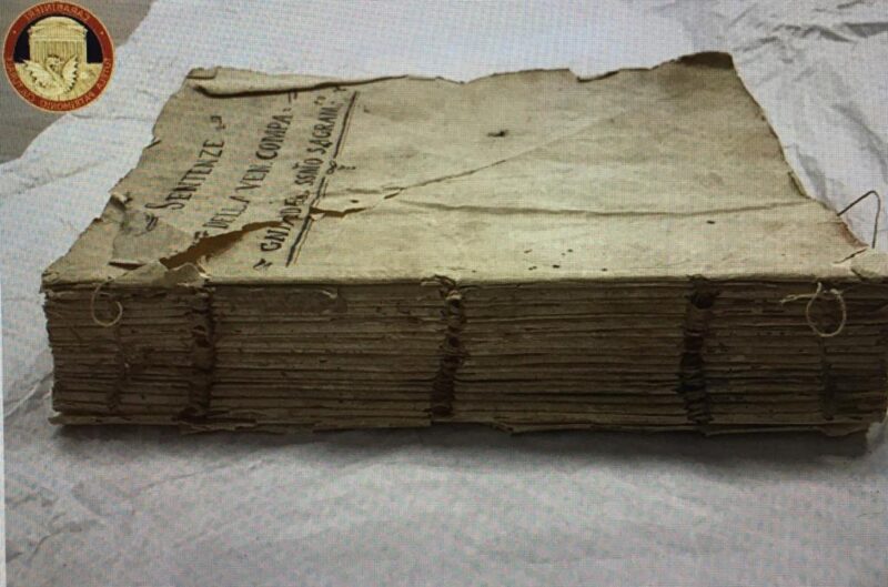 Il Nucleo Carabinieri Tutela Patrimonio Culturale (TPC) dell’Aquila ha recuperato un tomo risalente a fine ‘700 appartenente all’archivio parrocchiale della parrocchia di San Lorenzo Martire in Rotella (AP) della diocesi di San Benedetto del Tronto, Ripatronsone Montalto Marche.