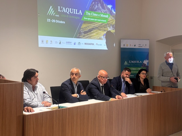 La montagna sarà la grande protagonista anche della fortunata manifestazione presentata proprio oggi in Comune “L’Aquila città di montagna 2025” che si svolgerà in centro storico dal 23 al 26 ottobre. Diverse le novità nel cartellone e non mancheranno attività come trekking con guide alpine, percorsi in e-bike nel cuore della città, scalate sulle pareti di arrampicata sportiva, discese adrenaliniche sulla pista da sci Neveplast e sulla pump truck per mountain bike.