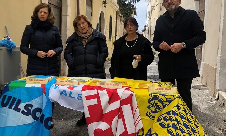 Non bastano insomma per sindacati e insegnanti solo i complimenti, servono fatti. Dinanzi all’ufficio scolastico regionale si sono ritrovati Maria Rosaria Lupi dello Snals Confsal, Miriam Del Biondi per la Flc Cgil, Claudio Di Cesare Gilda Unams e Maria grazia Commito della Uil scuola.
