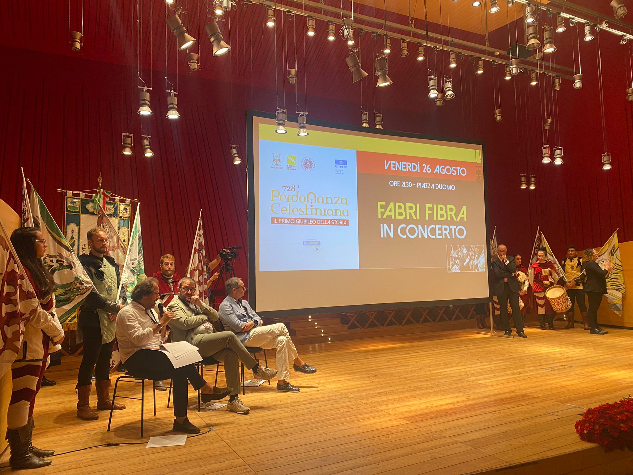 Ad illustrare il programma artistico il direttore artistico Leonardo De Amicis. Per i giovani ci sarà uno spazio, Perdonanza Village, con artisti importanti.