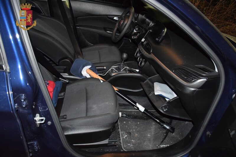 A seguito dell’intensificazione dei controlli sul territorio disposti dal Questore, la notte scorsa un equipaggio della squadra “volanti”, ha notato in zona Casale Signorini, una Tipo di colore scuro in sosta, risultata rubata e di proprietà della Regione Abruzzo – apparentemente senza occupanti, ma appena i poliziotti si sono avvicinati all’auto, sono sbucate due persone nascoste tra i sedili per non farsi vedere e alla vista degli agenti hanno acceso prontamente il motore investendo un operatore di polizia che ha riportato la frattura scomposta della caviglia.
