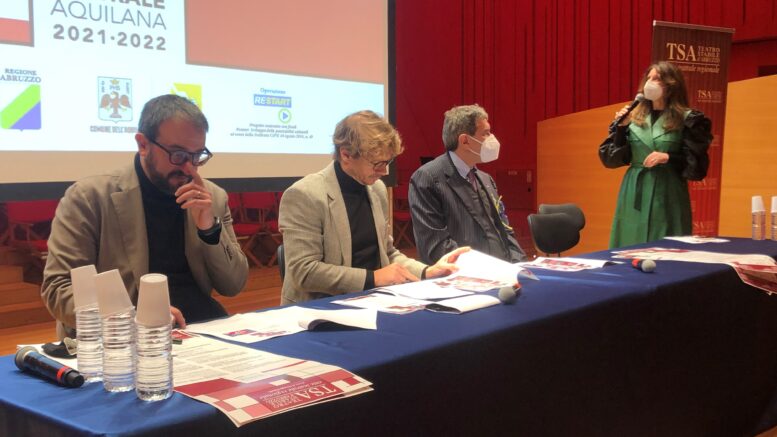 Una stagione di qualità per il ritorno alla capienza massima, pre Covid, quella presentata dal ‘Teatro Stabile d’Abruzzo’. Ad illustrare il cartellone il direttore del TSA Giorgio Pasotti col sindaco Pierluigi Biondi ed il presidente della Regione Marco Marsilio. Dieci spettacoli organizzati in due turni: si inizia il 23 novembre per terminare il 12 maggio. Spiccano le produzioni proprie dello Stabile d’Abruzzo.