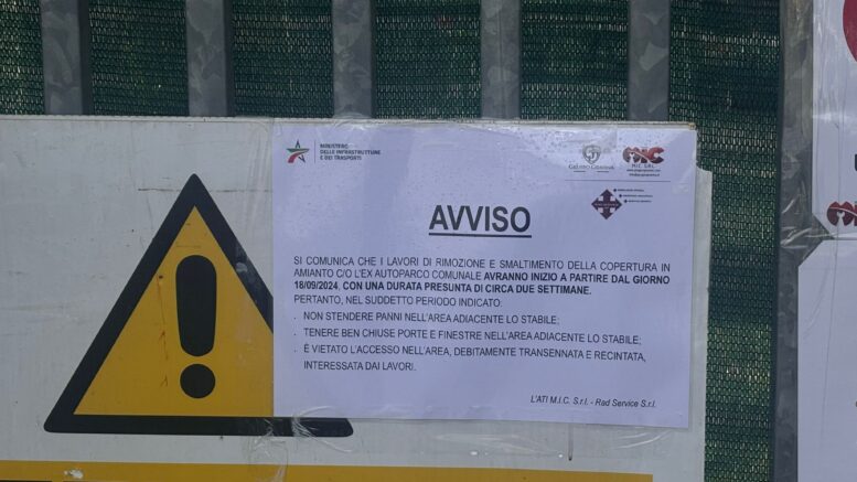 La struttura si trova in via Rocco Carabba. La rimozione in sicurezza dell’amianto prevede una procedura complessa e costosa, ma necessaria per asportare il materiale bandito che giace sul sito di via Carabba da più di vent’anni.