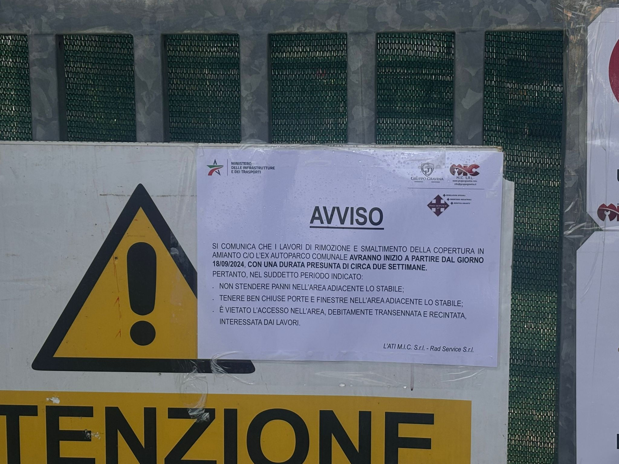 Ieri si era generato un tam tam sui social a causa di un cartello affisso che invitava la popolazione a non stendere panni fuori e a chiudere le finestre. Oggi è stato precisato che si tratta di una procedura del tutto normale in questi casi, prescritta della Asl in caso di bonifiche.