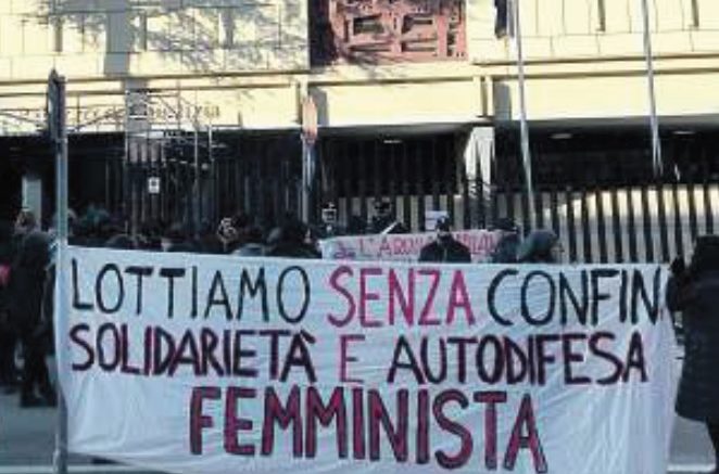 Diverse decine di manifestanti ieri hanno inscenato un sit-in davanti al tribunale de L’Aquila in concomitanza con l’udienza (subito rinviata) del processo scaturito dalla denuncia per diffamazione depositata dall’avvocato Antonio Valentini, nei confronti di tre donne. Queste ultime contestarono la presenza del professionista in un convegno organizzato dalla Onlus “Ilaria Rambaldi” alla Casa Internazionale delle donne, ricordando che Valentini è il difensore di Francesco Tuccia (il militare condannato in via definitiva a 7 anni e 8 mesi per lo stupro di Pizzoli). Valentini, dal canto suo, ha portato le tre attiviste in tribunale, in particolare per aver diffuso la lettera di una esponente del Movimento femminista proletario rivoluzionario dell’Aquila.