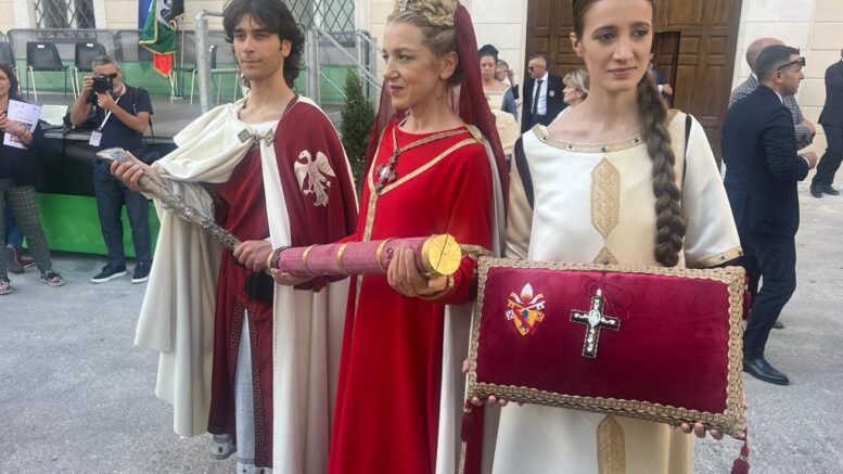 Per la prima volta la fiaccola, arrivata nelle chiesetta di San Pietro Celestino a Pescomaggiore, stamattina ha proseguito sino alla Madonna d’Appari, il santuario incastonato nella roccia. Questa sera l’inaugurazione con l’accensione del tripode della pace a Collemaggio e lo spettacolo di inizio Perdonanza che vedrà sul palco artisti del calibro di Renato Zero, Tiromancino, Colapesce e Dimartino, Malika Ayane, Gianluca Terranova e The Kolors.