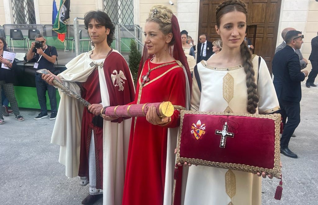 Per la prima volta la fiaccola, arrivata nelle chiesetta di San Pietro Celestino a Pescomaggiore, stamattina ha proseguito sino alla Madonna d’Appari, il santuario incastonato nella roccia. Questa sera l’inaugurazione con l’accensione del tripode della pace a Collemaggio e lo spettacolo di inizio Perdonanza che vedrà sul palco artisti del calibro di Renato Zero, Tiromancino, Colapesce e Dimartino, Malika Ayane, Gianluca Terranova e The Kolors.