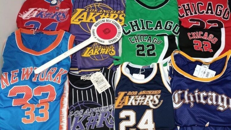 Nella mattinata di mercoledì3 luglio, i militari del Gruppo della Guardia di Finanza di L’Aquila, nel corso delle attività finalizzate a contrastare l’abusivismo commerciale e la contraffazione in genere, presso il mercato cittadino nella zona di Piazza d’Armi, hanno sottoposto a controllo un cittadino italiano intento alla vendita sulla bancarella di magliette riportanti le effigie di note squadre militanti nel campionato di basket americano NBA, pervenendo al sequestro di 120 capi di abbigliamento sportivo.