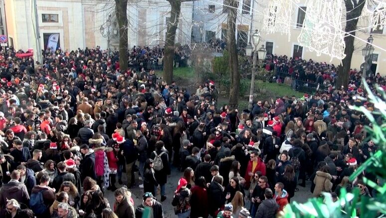 Un giovanissimo di 15 anni, è stato infatti trasportato in ambulanza all’ospedale in coma etilico. Altre 6 persone sono state accompagnate al San Salvatore a seguito di malori. Da registrare anche una decina di interventi sul posto del personale sanitario, delle forze dell’ordine e degli steward addetti alla sicurezza, in azione persino per calmare una rissa al parco del Castello. Episodi che, uniti al degrado urbano post-festa, hanno acceso il dibattito sui social network in relazione all’opportunità di potenziare sorveglianza, ma anche servizi e bagni chimici. Tanti, comunque, gli studenti a festeggiare goliardicamente tra calici e santi in in cartapesta da portare in processione. Molte le famiglie in giro. C’è chi ha improvvisato una spaghettata davanti alla cantina Ju Boss, con piatti a base di tonno e tartufo offerti gratuitamente. Da segnalare anche la tradizionale Christmas Run, la corsa di Natale dei runner dell’Atletica Abruzzo L’Aquila. Una delegazione della Tecnocall ha scelto, simbolicamente, di animare un sit-in in centro per tenere alta l’attenzione sulla vertenza anche in questi giorni. Davanti alla Fontana Luminosa è apparso uno striscione con scritto: “Non spegnete il lavoro”. La città celebra il Natale con il villaggio e il presepe allestiti al parco del Castello e con le aperture straordinarie dei Musei. Anche oggi e il 1° gennaio è possibile visitare il bastione est del Castello che ospita l’allestimento dello scheletro fossile del Mammut.