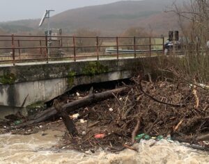 Disagi e allagamenti a Molina Aterno, dove un ponte sull’Aterno ha parzialmente ceduto a causa della spinta dei detriti che si sono accumulati a causa delle precipitazioni di queste ore