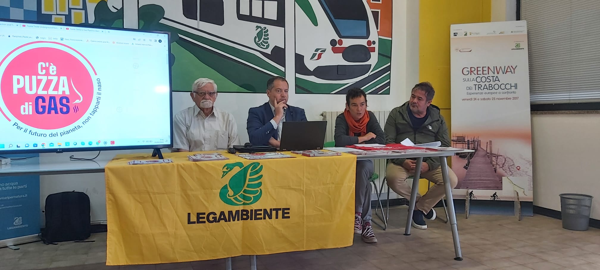 Queste le otto tappe di C’è Puzza di Gas. Dopo la prima tappa in Sardegna a Portoscuso (SU) e la seconda in Abruzzo, la campagna di Legambiente arriverà a ottobre in Sicilia a Gela (CL) presso il Terminal del Greenstream e in Basilicata a Val d’Agri (PZ) nel Centro Oli COVA; a novembre in Liguria, a Porto Venere (SP) presso il Terminal GNL di Panigaglia. A dicembre in Veneto, a gennaio in Campania; e infine a febbraio in Emilia-Romagna a Minerbio (BO) presso il Centro di Stoccaggio e contro il futuro approdo della Rete Adriatica del gas.