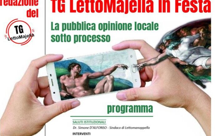 L’evento in programma in Piazza Umberto I° a Lettomanoppello si aprirà con i saluti del sindaco Simone D’Alfonso. Il programma del “Tg LettoMajella in Festa” prevede alle ore 9,30 gli interventi di Tommaso Di Biase e Dino Di Cecco – “Informazione, Comunicazione e Giornalismo”; alle ore 10,15 Daniela D’Alimonte – “Informazione e la Scuola”; alle ore 10,45 Antonio Di Marco “La Comunicazione Online e l’Imprenditoria; alle ore 11,15 Sante Di Biase, Maria Rosaria Trovarelli e Lucia Di Folca “I Giovani Autori e Narratori ed il Web”. Dopo la pausa pranzo l’evento riprenderà nel pomeriggio alle ore 14,45 con una visita guidata alla scoperta dei murales in pietra, del centro storico di Lettomanoppello e del laboratorio e museo del Maestro Gennaro con Maria Giovanna Palermo.