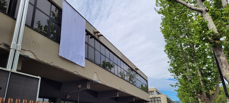 Su indicazione del Rettore, il Direttore Generale dell’Ateneo, Giovanni Cucullo, ha disposto la collocazione di lenzuoli bianchi presso la sede del Rettorato a Chieti, presso la sede del campus universitario di viale Pindaro a Pescara, presso il Museo Universitario di Chieti e, per il doppio valore simbolico che riveste in questa fase di emergenza, anche al “PalaUd’A”, che oggi è uno dei principali centri vaccinali anti COVID dopo esser stato anche centro tra i più attivi per la somministrazione dei tamponi.