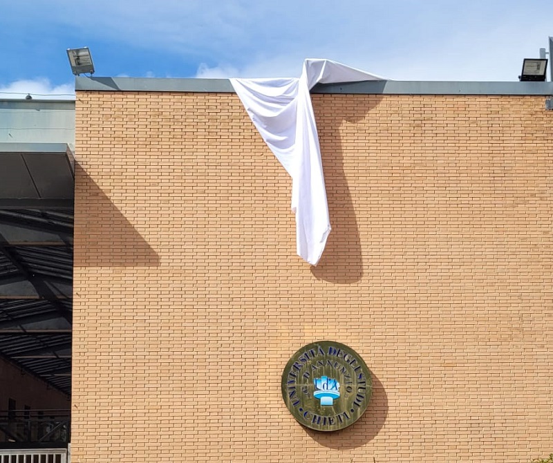 Su indicazione del Rettore, il Direttore Generale dell’Ateneo, Giovanni Cucullo, ha disposto la collocazione di lenzuoli bianchi presso la sede del Rettorato a Chieti, presso la sede del campus universitario di viale Pindaro a Pescara, presso il Museo Universitario di Chieti e, per il doppio valore simbolico che riveste in questa fase di emergenza, anche al “PalaUd’A”, che oggi è uno dei principali centri vaccinali anti COVID dopo esser stato anche centro tra i più attivi per la somministrazione dei tamponi.