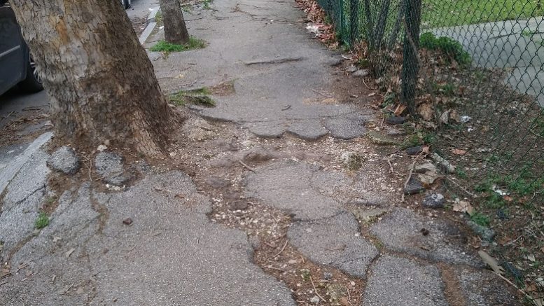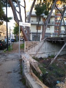 Vi allego due foto di situazioni urbane centrali nel totale degrado diventate pericolose, per pedoni ed automobilisti ed abbandonate all’incuria da parte dell’Amministrazione. Il marciapiede di via Coppa Zuccari rappresentato conduce al Liceo Marconi frequentato da più di mille studenti (foto in evidenza).