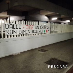 Ovunque anche in Abruzzo oggi si celebra Il Giorno del ricordo una solennità civile nazionale italiana, celebrata il 10 febbraio di ogni anno, che ricorda i massacri delle foibe e l’esodo giuliano dalmata. Alcuni comuni si sono svegliati con striscioni e volantini in memoria dei Martiri delle foibe a firma della Comunità Militante Coscienza e Dovere