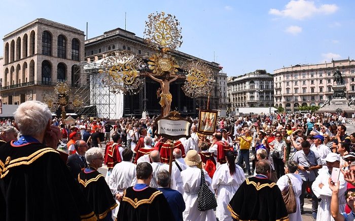 Tra gli ottomila partecipanti a Milano al 25/o Cammino di Fraternità delle Confraternite provenienti da tutta Italia c’era la delegazione composta da otto confratelli della Confraternita della Sacra Spina e del Gonfalone.