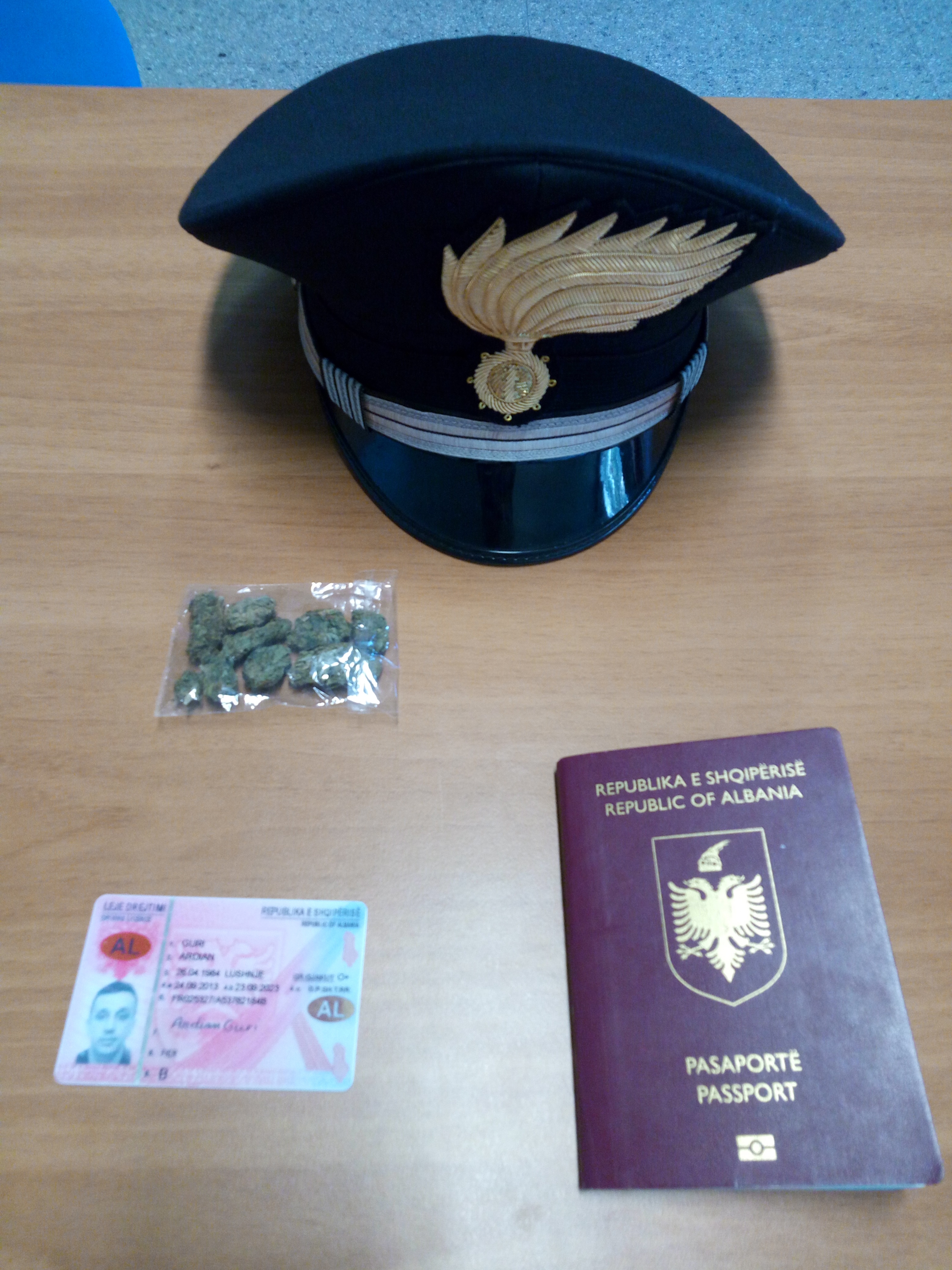 Dopo aver intimato al conducente del mezzo di fermarsi i militari dell’arma hanno proceduto ad un accurato controllo nel corso del quale è stato rinvenuto nella parte posteriore del mezzo una busta di plastica con dentro 8 dosi di marijuana per un peso complessivo di circa cinque grammi. I giovani sono stati condotti presso il Comando Compagnia di Montesilvano per un controllo più approfondito ed in seguito alla consultazione delle dei dati ministeriali è stato accertato che uno degli occupanti era un clandestino, tra l’altro noto pregiudicato della zona di San Benedetto del Tronto con all’attivo innumerevoli vicende penali per reati contro il patrimonio, la persona, gli stupefacenti e l’amministrazione della giustizia. L’uomo identificato in Guri Hakik nato in Albania il 26 Aprile 1984 ivi residente e domiciliato a San Benedetto del Tronto è risultato clandestino sul territorio italiano in quanto era già stato destinatario di un decreto di espulsione emesso dal Prefetto di Macerata in data 11 Dicembre 2011 per il quale era stato accompagnato presso la frontiera marittima di Ancona. Le indagini dei militari dell’Arma consentivano di accertare che l’uomo era riuscito a rientrare sul territorio nazionale grazie all’utilizzo di documenti d’identità falsi attestati false generalità con le quali riusciva ad eludere anche i controlli di polizia perché la nuova identità non era segnalata alle forze di polizia in quanto pulita, incensurata. L’uomo è stato arrestato per reingresso clandestino sul territorio dello stato italiano e per possesso di documenti di identificazione falsi. La droga invece è stata sequestrata.