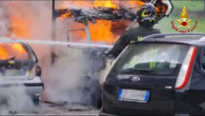 La squadra giunta prontamente sul posto ha provveduto allo spegnimento di due mezzi, un’auto ed un furgone. Durante le operazioni di spegnimento si è provveduto alla messa in sicurezza di due bombole GPL presenti sul furgone. L’incendio è riconducibile ad un guasto dell’autovettura. Non ci sono stati feriti, la squadra messo in sicurezza i mezzi e la zona delle operazioni. Sul posto i Carabinieri.