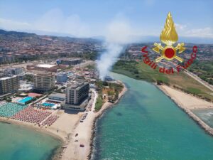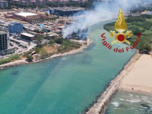 AGGIORNAMENTO ore 16-Mezzi da terra e un elicottero hanno gestito il fronte delle fiamme tra non poche difficoltà a causa della zona interessata dall’incendio altamente popolata. Siamo a ridosso della foce del fiume Saline, sulla sponda nord. Le fiamme pare siano divampate da un canneto. Le fiamme hanno lambito anche il luna park presente nell’area, ma i Vigili del fuoco sono riusciti a circoscrivere il rogo. In azione otto squadre del Comando provinciale di Pescara e l’elicottero, che sta effettuando dei lanci. A bruciare, secondo le prime informazioni, sterpaglie e il canneto presente sulla sponda del fiume. Sul posto è subito intervenuto il sindaco, Ottavio De Martinis: “Anche questa volta il pericolo è scampato, ma la natura ha comunque subito danni. Ringrazio i Vigili del Fuoco per il tempestivo intervento, che ha consentito di evitare il peggio”.