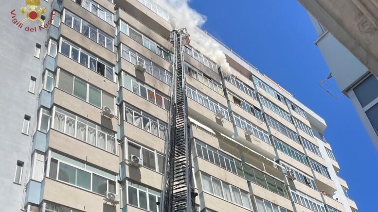 Un incendio si è sviluppato nella tarda mattinata all’interno di uno stabile di via Lago di Bomba a Montesilvano, all’interno di un appartamento del decimo piano