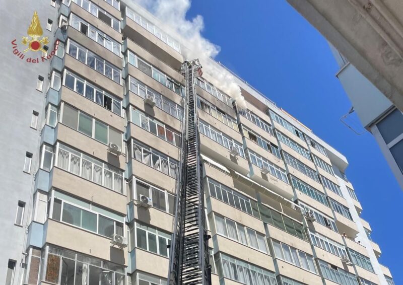 Un incendio si è sviluppato nella tarda mattinata all’interno di uno stabile di via Lago di Bomba a Montesilvano, all’interno di un appartamento del decimo piano