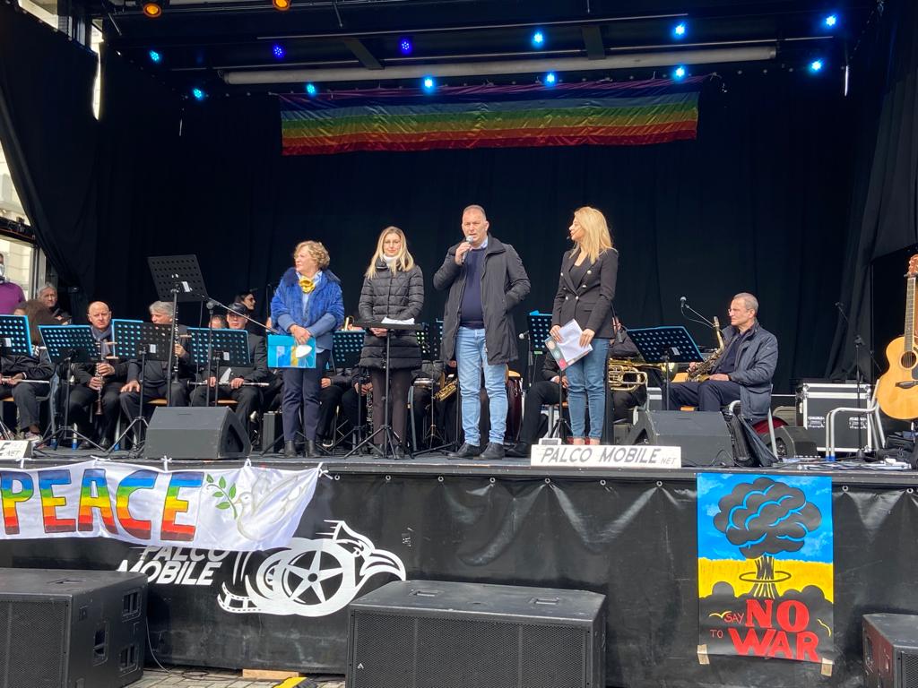 Ad esibirsi sul palco allestito nel cortile dell’istituto l’ensemble “I colori del pentagramma”, formazione composta da allievi e insegnanti dell’IIS Alessandrini e del Mibe di Pescara, diretta dal maestro Renata Travaglini, nobilitati dalla presenza del soprano Norma D’Arcangelo e del tenore Nunzio Fazzini, la cantante ucraina Kalyna Salyak che ha eseguito due brani di un cantautore di Kiev scomparso di recente, l’Alessandrini’s band, I Prendila così tribute band di Mogol Battisti “cantano la pace” con la special guest Federico D’Alessandro della IV A Tur e gli Scena muta. Tra il pubblico, con studenti e docenti, tante autorità, curiosi e cittadini desiderosi di dare un segno della propria solidarietà e vicinanza ad un popolo in sofferenza.