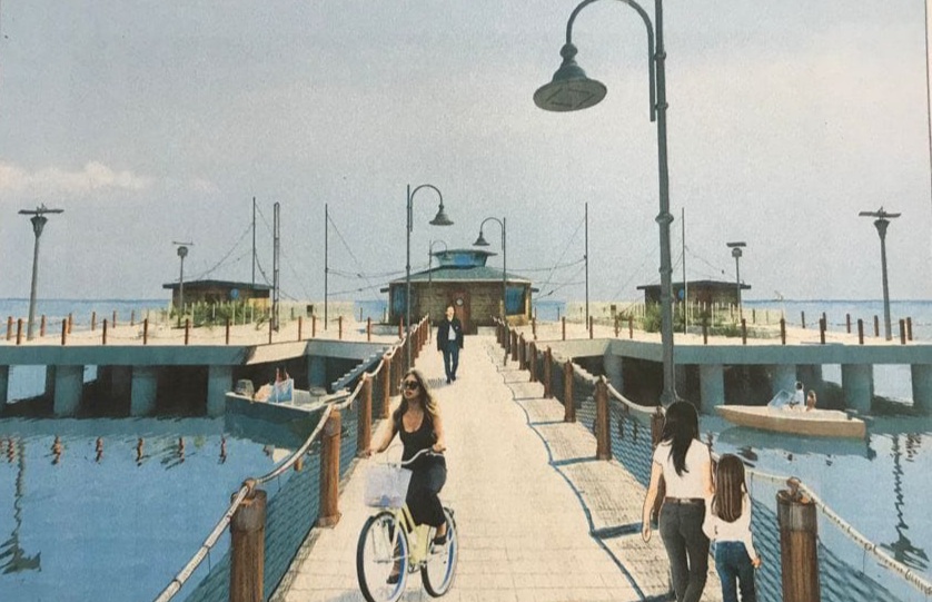 Sarà uno dei pontili più lunghi d’Italia che correrà complessivamente per circa 300 metri dall’arenile al mare, per riqualificare la zona di Fosso Mazzocco a Montesilvano