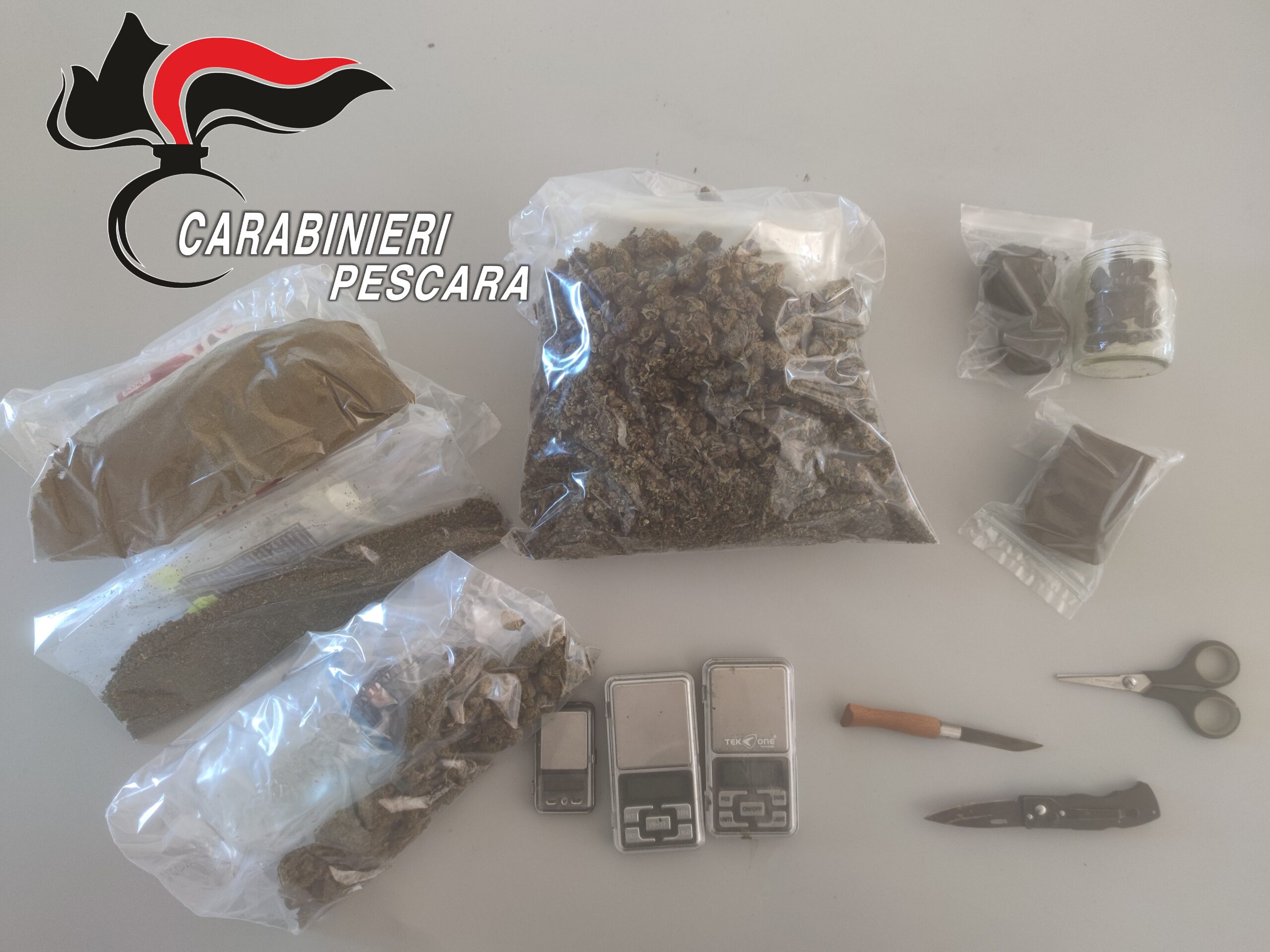 Una volta nell’appartamento dell’uomo i carabinieri hanno capito il motivo della fuga. Infatti, all’interno dell’abitazione c’erano diversi contenitori contenenti circa 700 grammi di marijuana (di cui parte già suddivisa in dosi), 300 gr di hashish nonché materiale vario per confezionamento e taglio. Non è da escludere che il soggetto, al fine di ricavare maggiori profitti dalla vendita sul mercato dello stupefacente, utilizzasse un semplice espediente che consisteva nel polverizzare la marijuana e mischiarla con dell’olio di marijuana (sottoposto a sequestro). Al termine di questa operazione, il tutto veniva compattato e rivenduto come hashish (dal prezzo maggiore).