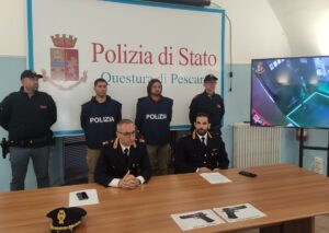 L’episodio è avvenuto alle ore 20:30 circa di martedì scorso 9 maggio nei pressi del lungomare di Montesilvano. Il rapinatore, poi identificato nel 43enne pregiudicato, è entrato nella zona riservata ai clienti della sala slot di Porto Allegro, armato di pistola e con il volto travisato, ed ha tentato di rapinare l’incasso avvicinandosi all’ufficio, dove hanno accesso solo i dipendenti. Dopo aver minacciato l’unica impiegata presente puntandogli la pistola all’altezza del viso, ha intimato la consegna dei soldi, la ragazza è però riuscita a chiudere la porta della stanza e a chiedere aiuto. Il rapinatore, a quel punto, ha preso a calci la porta blindata ma senza successo. Successivamente, è scappato senza bottino. Gli agenti, dopo aver acquisito elementi utili su quanto accaduto, hanno attivato immediatamente le ricerche del rapinatore. Nella circostanza, la commessa, ha raccontato minuziosamente agli agenti la dinamica dell’aggressione, permettendo così di attivare immediatamente le ricerche dell’uomo. Le tempestive e continue ricerche poste in essere nonché le attività di monitoraggio e investigative svolte già da tempo dal personale della squadra mobile, hanno permesso, in meno di due ore, di individuare il presunto autore del tentativo di rapina. Gli agenti sono riusciti ad individuare l’abitazione in cui vive a Pescara, unitamente ai familiari, si sono quindi recati sul posto e lo hanno fermato. L’immobile veniva perquisito e venivano rinvenuti i vestiti usati per la rapina nonché la pistola celata sotto un mobile del giardino, rivelatasi un’arma soft air avente aspetto e dimensioni identiche ad una pistola semiautomatica. L’uomo è stato pertanto arrestato con l’accusa di tentata rapina aggravata e, dopo gli atti di rito, trasferito nel locale carcere, a disposizione dell’autorità giudiziaria.