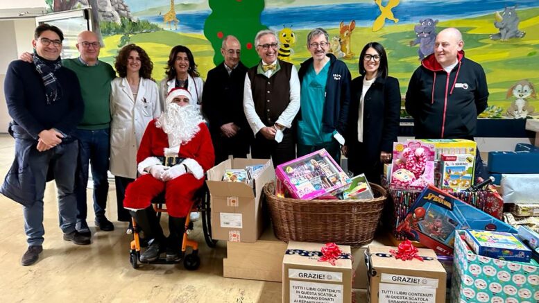 Per contribuire al sorriso di tanti bimbi con disabilità, dei loro fratelli e sorelle con un gesto di solidarietà concreta per quelle famiglie che versano in condizioni economiche difficili, ma anche per i piccoli pazienti dei reparti pediatrici dell’ospedale di Pescara nonché per i bambini dell’Associazione Malattie Rare Abruzzo. Anche quest’anno invitiamo tutti a partecipare per mettere in circolo solidarietà e amore, per dimostrare vicinanza autentica a chi sta affrontando un periodo di difficoltà in una fase della vita come quella dell’infanzia in cui gli ostacoli non dovrebbero esistere. Partecipare è semplicissimo: basta acquistare un piccolo dono da lasciare nel negozio “Il Bosco Incantato” a Montesilvano in via D’annunzio 56. All’atto della donazione sarà rilasciato uno scontrino cortesia ed il donatore, se lo vorrà, potrà scrivere il suo nome ed una dedica sul “Registro dei donatori”. Si può donare recandosi direttamente presso il negozio “Il Bosco Incantato” a Montesilvano in via D’annunzio 56, online sul sito www.ilboscoincantatoshop.it (scegliendo come modalità di spedizione DONAZIONE PER GIOCATTOLO SOSPESO) o visitando la pagina Facebook “Il Bosco Incantato Shop”, provvedendo al pagamento del dono scelto tramite Bonifico Bancario IBAN IT80O0306977341100000002921 (causale GIOCATTOLO SOSPESO conto intestato a Il Bosco Incantato) o Paypal. Il Presidente Cav. Claudio Ferrante in veste di Babbo Natale si recherà personalmente a consegnare i doni all’interno dei reparti pediatrici e all’evento di Natale dell’Ass.Malattie Rare. I bambini con disabilità potranno recarsi a ritirare il proprio dono dal 21 al 24 dicembre. Per avere tutte le informazioni chiamare: 085 219 27 18 – 392 420 73 41