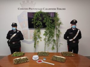 Nell’ambito di un servizio straordinario di controllo del territorio per la repressione dei reati in materia di stupefacenti, i Carabinieri hanno proceduto al controllo di un terreno agricolo ubicato nel comune di Teramo, in cui i due sono stati sorpresi mentre coltivavano tre piante di marijuana dell’altezza di circa 2,40 metri.