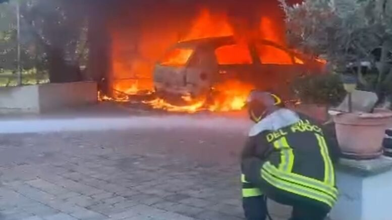 Le fiamme hanno avvolto una tettoia esterna in cui erano ricoverati una Fiat Grande Punto, un trattorino tagliaerba, alcune biciclette ed era depositati numerosi sacchi di pellet. Nell’abitazione adiacente si trovava solo una ragazza che, accortasi dell’incendio, ha richiesto l’intervento dei vigili del fuoco e subito dopo ha messo in salvo la sua auto parcheggiata sotto la tettoia. I vigili hanno spento rapidamente l’incendio che non si è propagato al vicino fabbricato ma ha distrutto la Grande Punto e tutte le attrezzature e il materiale presente sotto alla tettoia oltre a del legname depositato all’esterno. Sul luogo dell’intervento si è recata anche una pattuglia dei Carabinieri di Alba Adriatica per gli adempimenti di competenza.